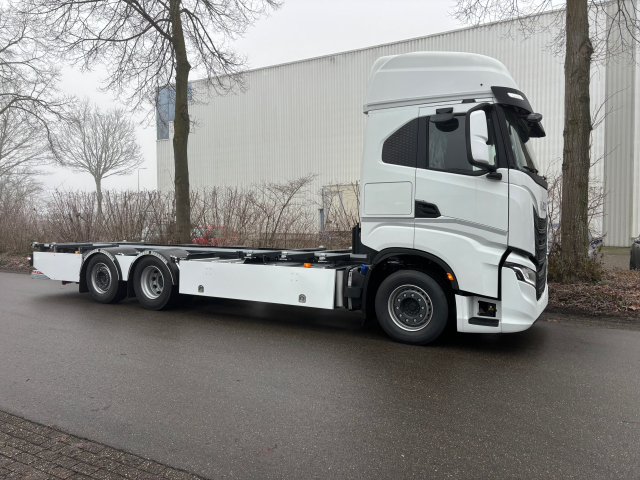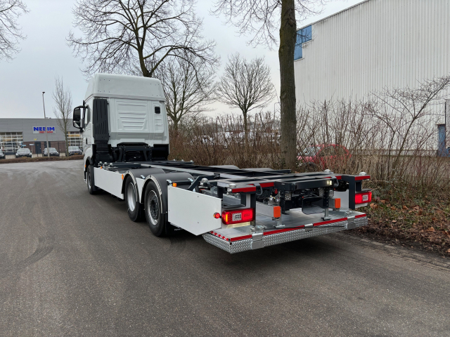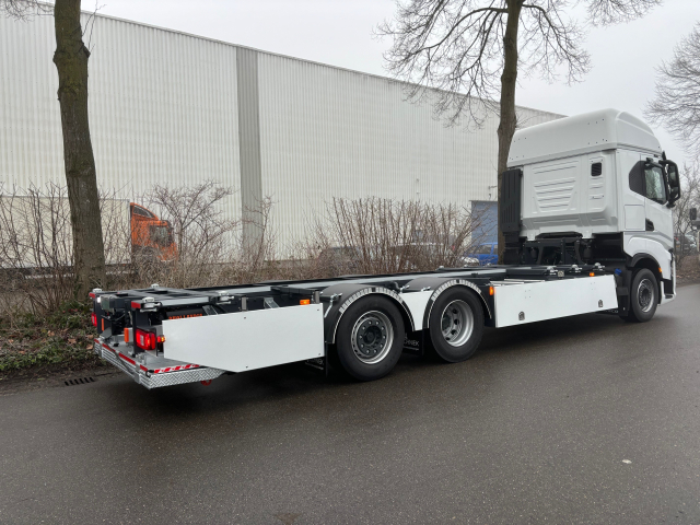 De opbouw is voorzien van 5 containervergrendelingen, een grote kist & een Dhollandia laadklep.