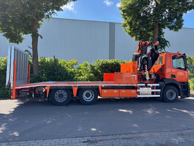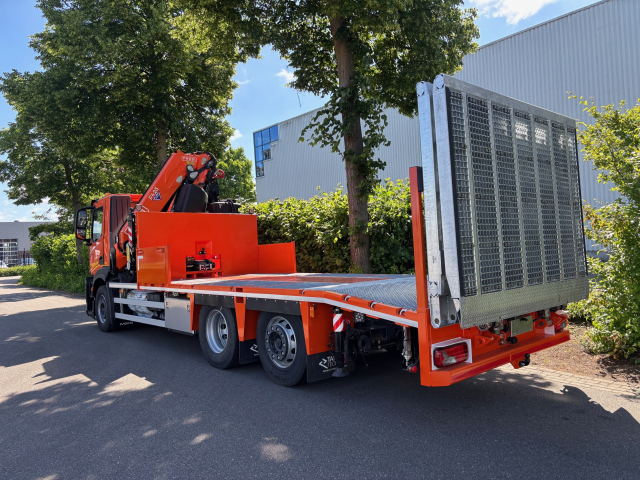 De opbouw is voorzien van een Fassi 41tm kraan, Dhollandia oprijbanen en een zware lier.