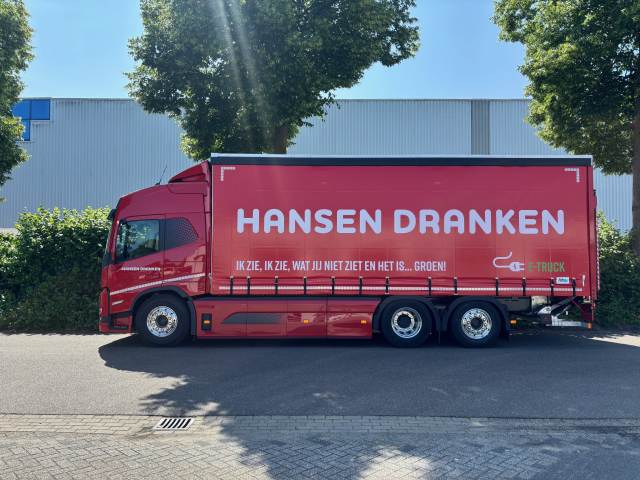 Voor onze trouwe klant Hansen Dranken uit Linne hebben wij de opbouw mogen verzorgen van de eerste elektrische truck binnen de vloot. Het betreft een schuifzeilenopbouw zoals wij deze al vaker aan Hansen geleverd hebben gemonteerd op een Volvo FM Electric.