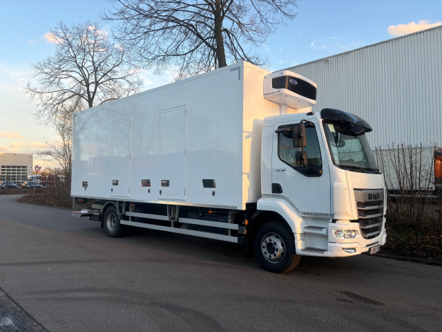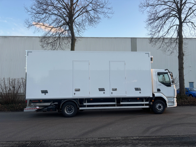 Aan de firma Loven Trucks hebben wij een geïsoleerde laadbak met Dhollandia laadklep en een Carrier koelmachine geleverd. De opbouw is voorzien van achterdeuren, twee zijdeuren en een tussenwand met een extra deur.